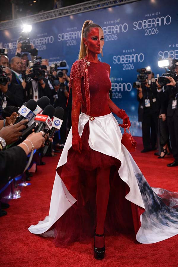 LA TALENTOSA ACTRIZ NILENY DIPPTON, DEMOSTRÓ, UNA VEZ MÁS, SU GRAN SENSIBILIDAD ANTE LAS GRAVES PROBLEMÁTICAS SOCIALES, UTILIZANDO EN LA ALFOMBRA DE LOS PREMIOS SOBERANO, UN IMPACTANTE Y EXQUISITO VESTUARIO, CON EL CUAL PARECÍA ESTAR CUBIERTA DE SANGRE, COMO PROTESTA POR LAS VÍCTIMAS DE LA TRAGEDIA DE LA DISCOTECA JET SET Y LAS GUERRAS, QUE EN ESTE MOMENTO ESTÁN AFECTANDO A GRAN PARTE DE LA HUMANIDAD.