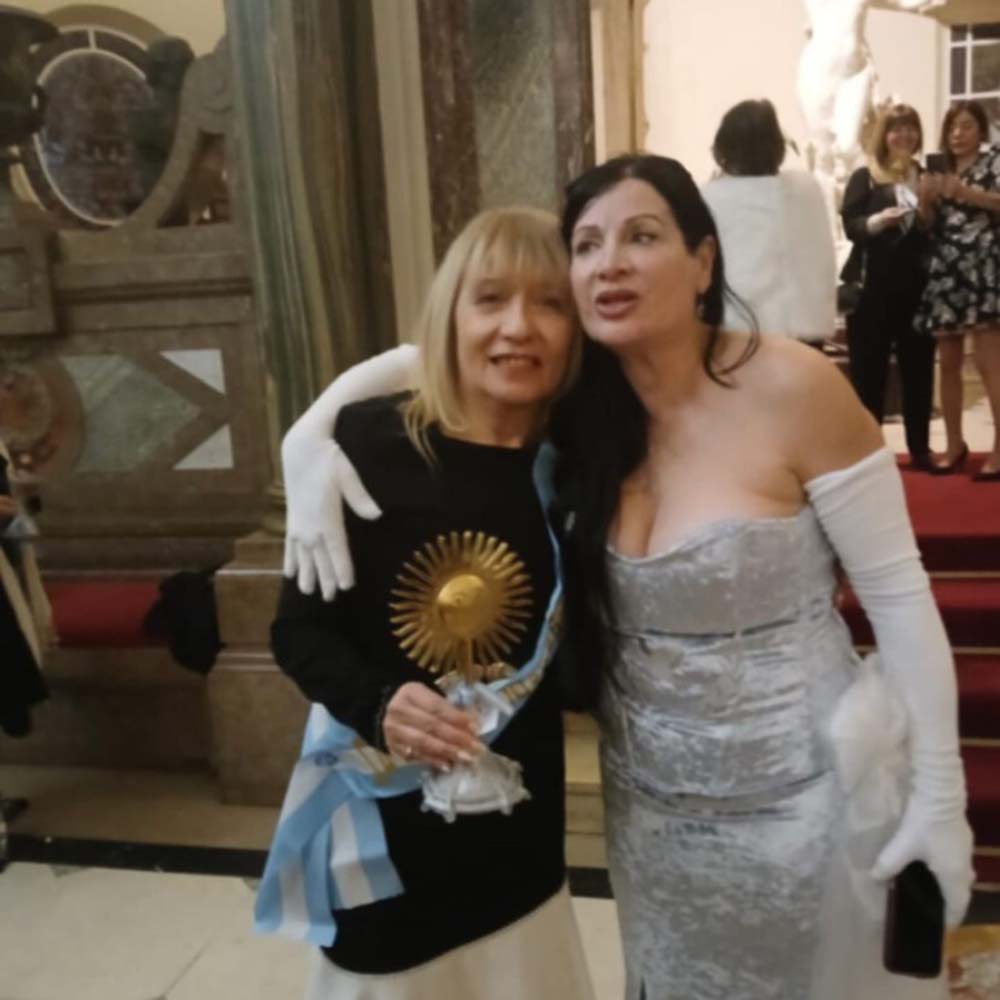 La escritora recibió la estatuilla Sol de Mayo y la banda argentina en un emotivo acto organizado por Gaviota de Plata.
