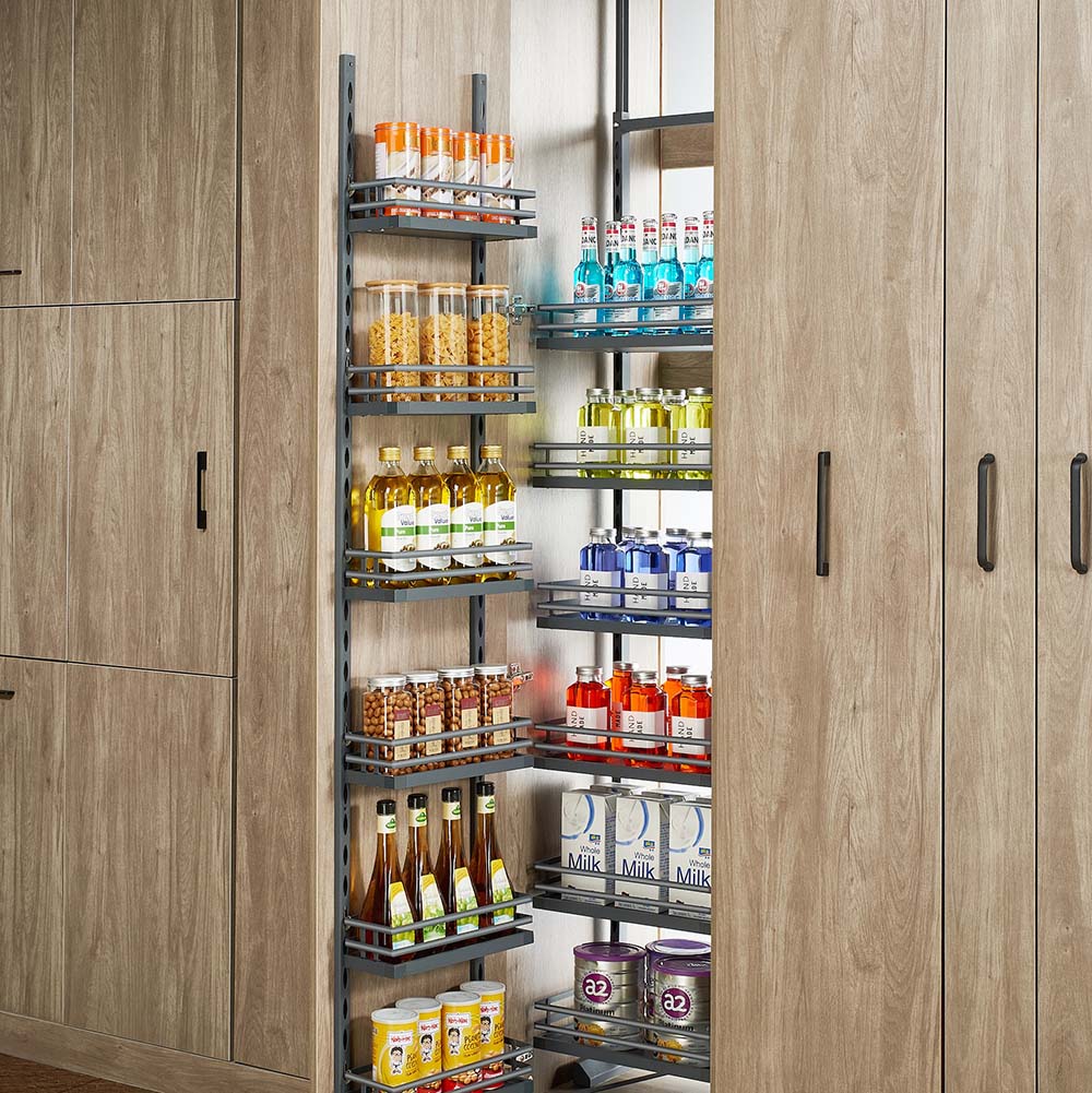 La Línea Black viene en dos versiones Plus y Pure y abarca los extraíbles más cotizados del mercado: columnas, canastros, zapateros, pantaloneros, entre otros. Llega para darle aún más identidad a la declaración de cada estilo. La incorporación de estos productos viene a completar una propuesta integral de elementos de cocina en Black/ Antarcita, conformada por laterales de cajones Matrix, perfiles, zócalos, tiradores, etc. De esta manera, se compone toda la estética del mueble bajo un mismo lenguaje.