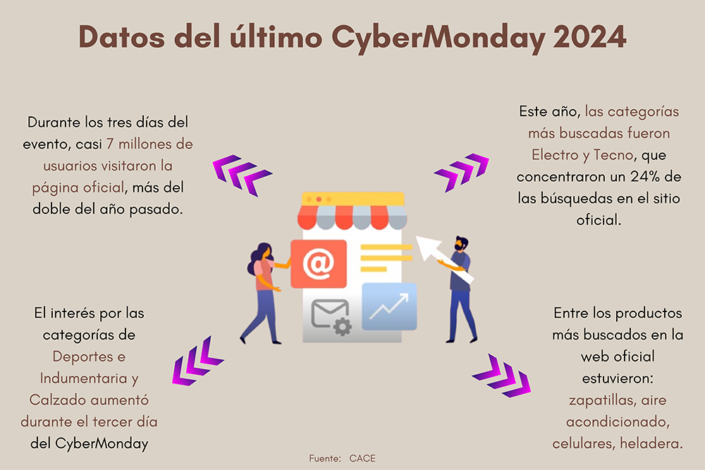 Aunque, más allá de este escenario crítico, el último CyberMonday 2024 presentó un respiro para el sector comercial, con cifras récord en ventas online. Durante los tres días del evento organizado por la Cámara Argentina de Comercio Electrónico (CACE), casi 7 millones de usuarios visitaron la página oficial, duplicando los números del año pasado. Entre las categorías más buscadas se destacó el calzado, que registró un aumento en el interés de los consumidores, especialmente hacia el cierre del evento.