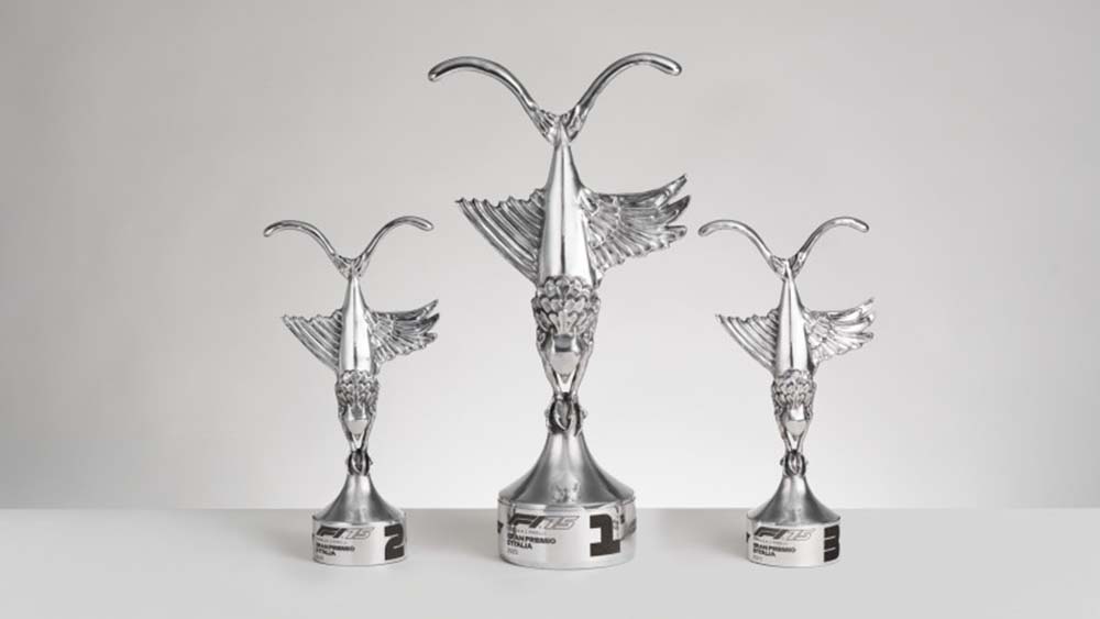 “La referencia al mundo animal en este trofeo surge de la fascinación natural del ser humano por él, un sentimiento instintivo que trasciende y expande nuestros límites de velocidad, vuelo y resistencia”, explica Vascellari. “Los animales son una fuente inagotable de inspiración. Al diseñar el trofeo, pensé en el momento en que el piloto lo alza por encima de su cabeza: un gesto simbólico para elevar el mundo animal y la naturaleza por encima de nosotros, en un intento por restablecer el equilibrio. También es una celebración de la capacidad de la naturaleza para ser fuente de inspiración”.