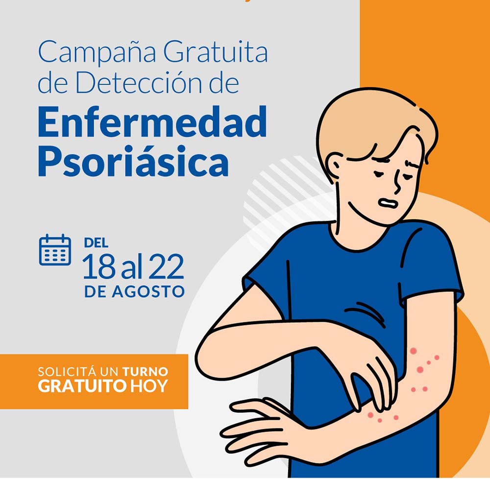 La Sociedad Argentina de Reumatología (SAR) y la Sociedad Argentina de Psoriasis (SOARPSO) junto a la Asociación para el Enfermo de Psoriasis y Artritis Psoriásica (AEPSO), llevarán a cabo una campaña de detección gratuita de enfermedad psoriásica con el objetivo de concientizar, prevenir y mejorar el diagnóstico temprano de esta enfermedad.