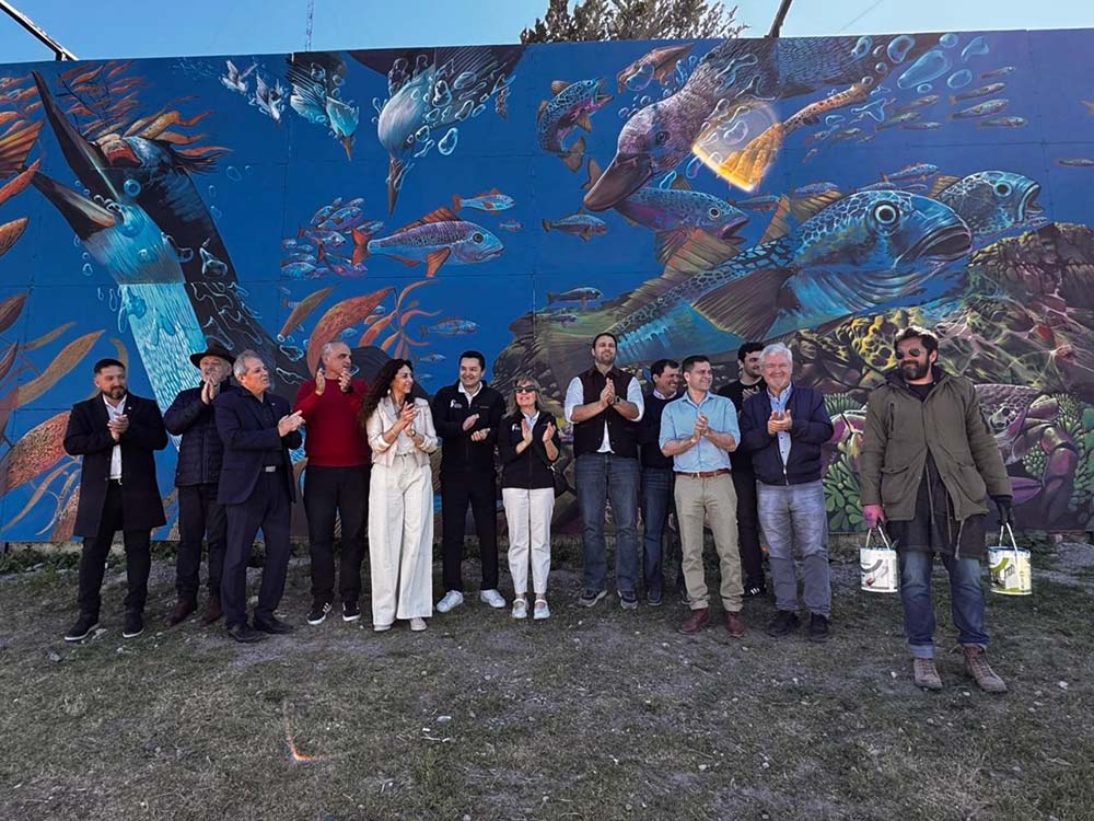 La obra, titulada “mare magnun” (mar inmenso), refleja la magnificencia de la vida marina y costera que habita en sus deslumbrantes bahías, donde naturaleza y cultura se entrelazan en un legado único. El mural —de 5 metros de altura y 40 metros de largo— uno de los más grandes de la Patagonia, se convirtió en un nuevo ícono visual de la ciudad, reafirmando el valor de su entorno y su gente.