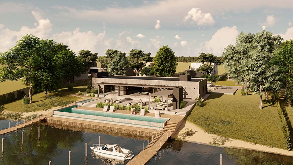El masterplan se despliega sobre 25 hectáreas de espejos de agua navegables y 229 lotes de aproximadamente 900 m², de los cuales el 70% cuentan con salida al río y amarra propia. Naudir Delta incorpora distintas tipologías de amarras que se adaptan a cada estilo de vida: Amarra Delta, con tablestacado natural y muelles largos, en sintonía con el entorno ribereño. Amarra con tablestaca de madera, que ofrece proximidad inmediata a la embarcación. Y por último Amarra Canal, con contacto directo a los canales navegables.