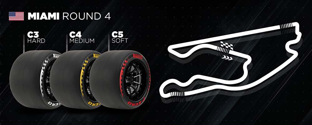 Para afrontar las 19 curvas y las tres largas rectas del Autódromo Internacional de Miami, nombre con el que se bautizó para su carrera inaugural en 2022, los equipos tendrán acceso a los tres compuestos más blandos de la gama Pirelli: C3, C4 y C5. El asfalto, reasfaltado en 2023, presenta un bajo nivel de rugosidad y gana agarre a lo largo del fin de semana a medida que la pista evoluciona.