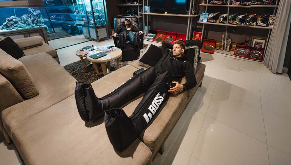 “En la carrera no hay silencio, todo es ruido, adrenalina, desierto, sensaciones al máximo. Allá corro para ganar, acá paro para estar tranquilo y recuperar con Boss Recovery”, explica Luciano Benavides. En ese proceso, la recuperación muscular, la mejora de la circulación, el alivio de la carga en piernas y espalda y la capacidad de bajar el estrés físico se vuelven fundamentales para sostener el rendimiento a lo largo de la competencia.