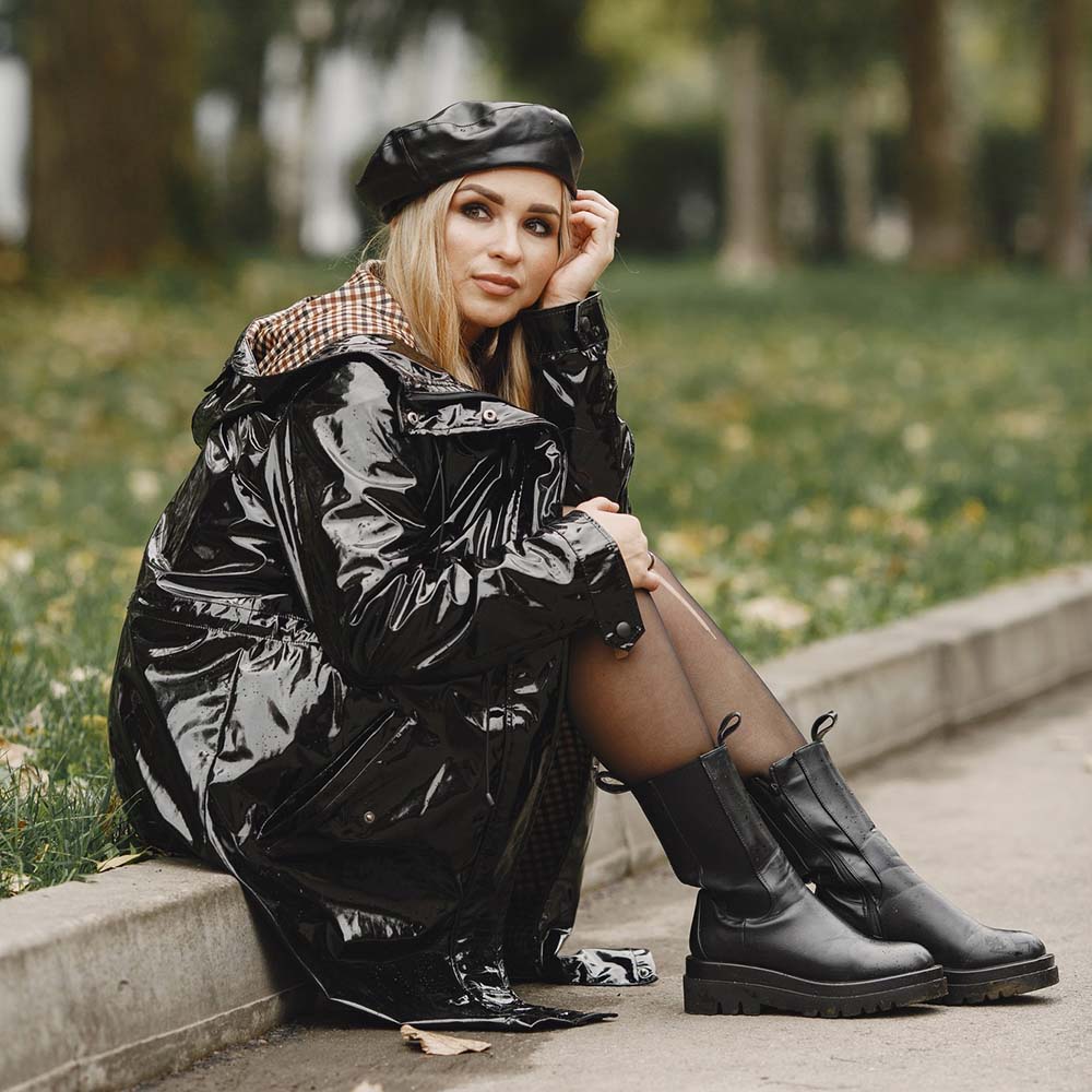 • Look de noche: Una minifalda de vinilo negro con un top de seda, o un vestido negro clásico con unas botas de PVC de caña alta.