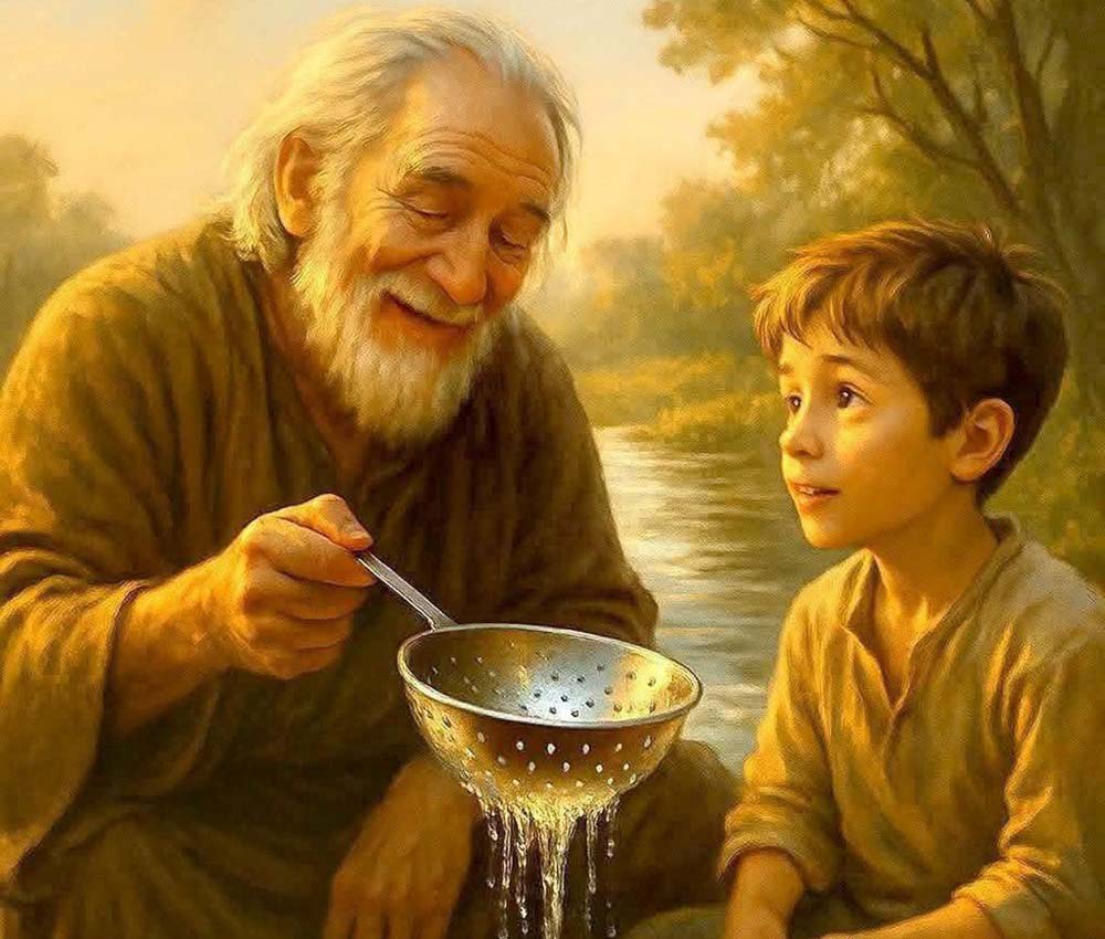 —Tengo sed. Tráeme un poco de agua… pero usa ese colador viejo que ves ahí en el suelo.