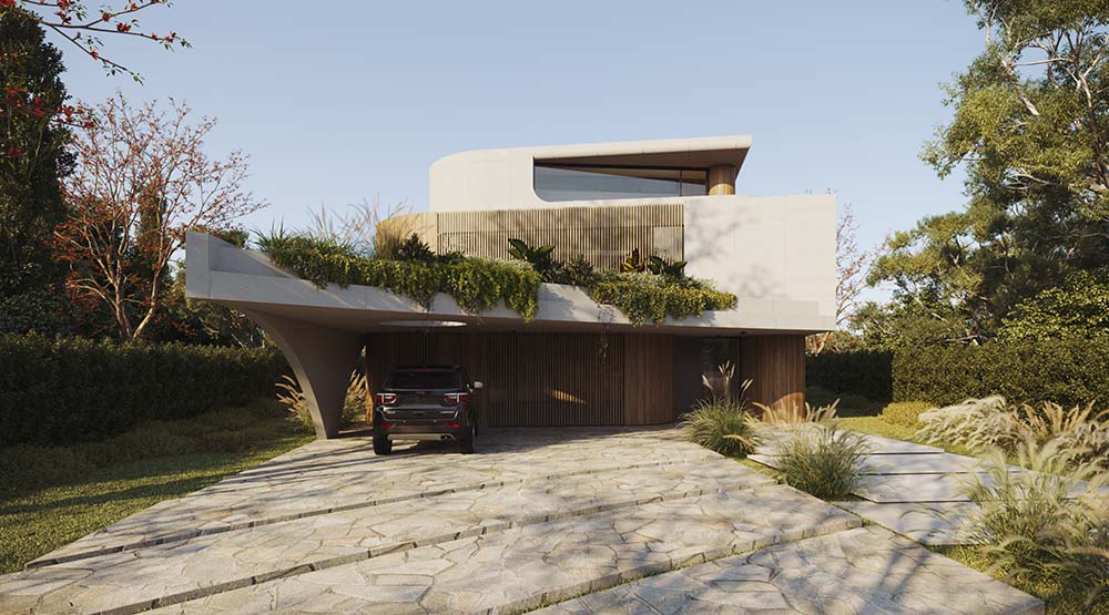 Frente a un mercado dominado durante años por viviendas de líneas rectas, techos planos y expresiones minimalistas repetidas, Gerlero detectó una demanda creciente por formas más orgánicas, espacios fluidos y una relación más intensa entre interior y exterior.