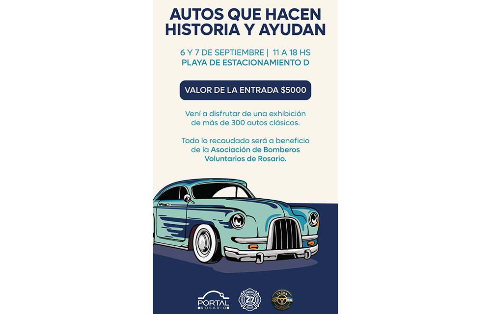 LOS DÍAS 6 Y 7 DE SEPTIEMBRE, PORTAL ROSARIO SERÁ SEDE DE UNA EXPOSICIÓN DE AUTOS Y MOTOS CLÁSICAS A BENEFICIO DE LA ASOCIACIÓN DE BOMBEROS VOLUNTARIOS DE ROSARIO. LA MUESTRA REUNIRÁ A MÁS DE 300 VEHÍCULOS HISTÓRICOS EN LA PLAYA DE ESTACIONAMIENTO “D” DEL CENTRO COMERCIAL