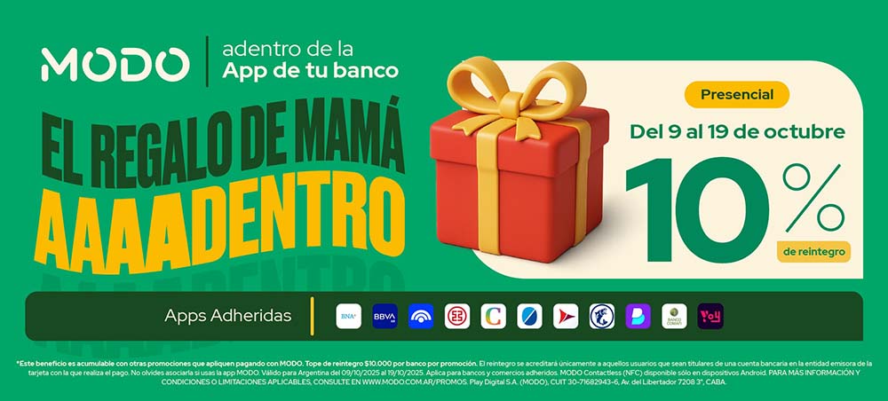 Además, los beneficios de MODO se pueden acumular con otras promociones bancarias vigentes, lo que potencia las oportunidades de ahorro y amplía las opciones para hacerle el mejor regalo a mamá sin gastar de más. Para aprovecharlos, solo es necesario pagar con MODO desde la app bancaria.
