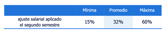 Según el relevamiento, los ajustes salariales aplicados durante el segundo semestre de 2025 promediaron el 32%, con incrementos que oscilaron entre un mínimo del 15% y un máximo del 60%.
