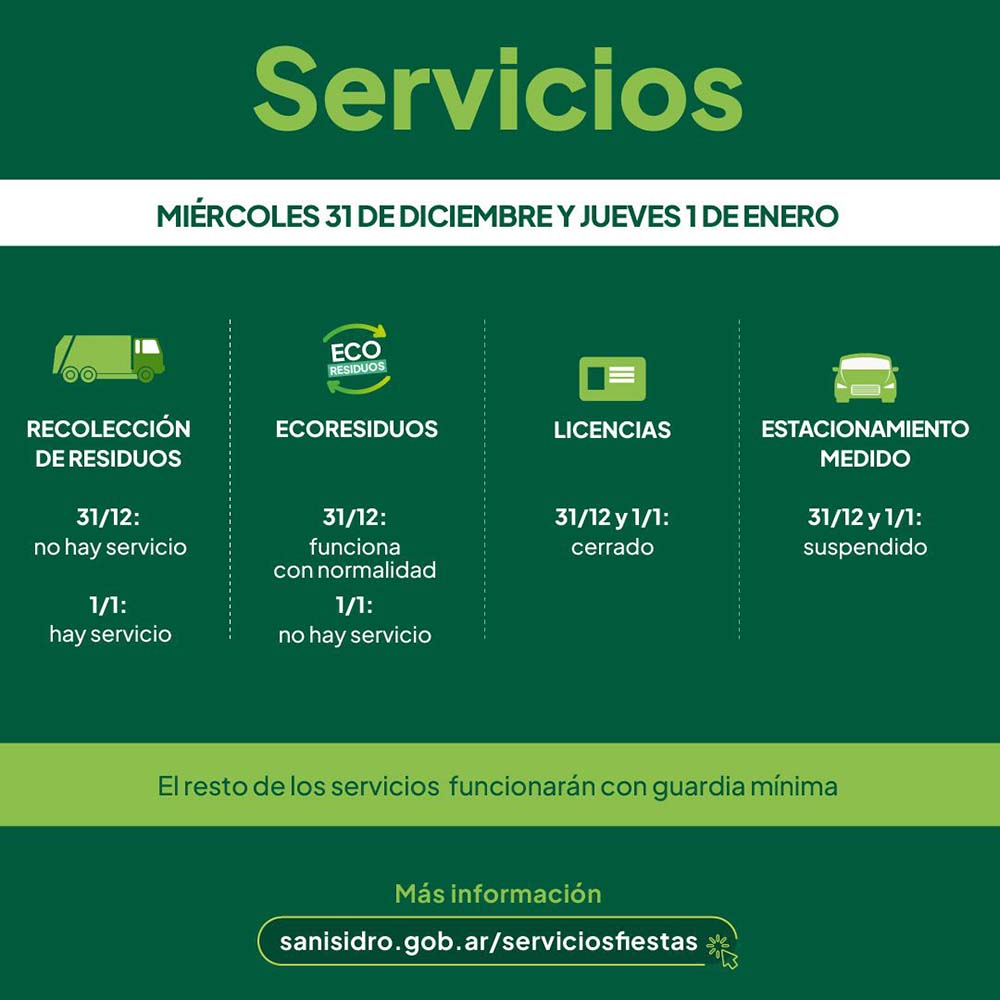 DURANTE LAS FIESTAS, LOS SERVICIOS PÚBLICOS MUNICIPALES DE SAN ISIDRO OPERARÁN CON HORARIOS ESPECIALES POR EL ASUETO DEL 31 DE DICIEMBRE, Y EL FERIADO DEL 1 DE ENERO, AÑO NUEVO.
