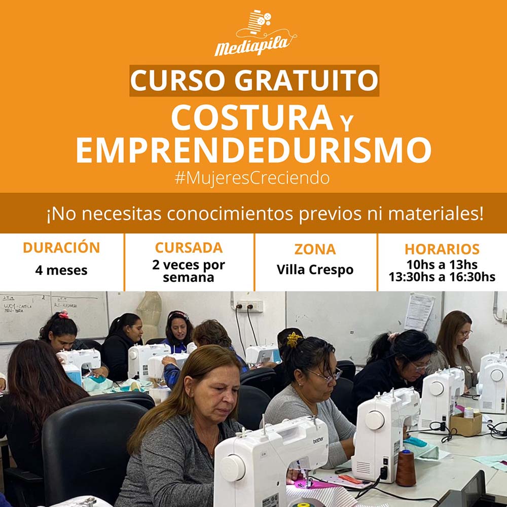 FUNDACIÓN MEDIAPILA ABRIÓ LA INSCRIPCIÓN A UNA NUEVA EDICIÓN DE SUS CURSOS GRATUITOS DE COSTURA Y PROGRAMACIÓN, DIRIGIDOS A MUJERES QUE BUSCAN ADQUIRIR HERRAMIENTAS CONCRETAS PARA MEJORAR SUS OPORTUNIDADES LABORALES Y AVANZAR HACIA LA AUTONOMÍA ECONÓMICA. Las nuevas ediciones se inscriben en el modelo de trabajo integral de la Fundación, Leer más