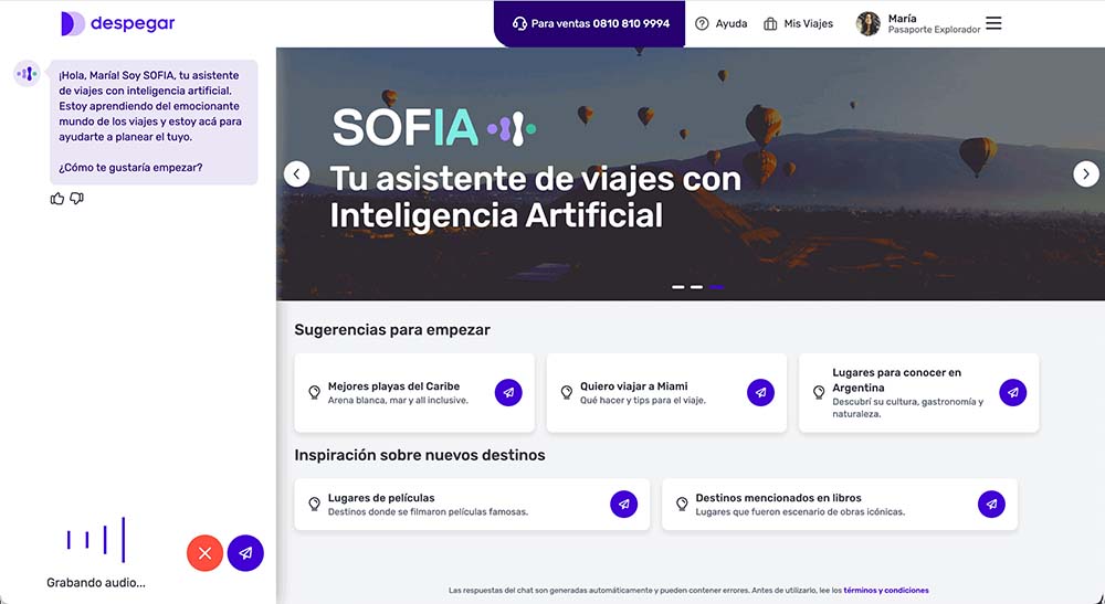 A DOS AÑOS DE SU LANZAMIENTO, SOFIA, EL ASISTENTE DE INTELIGENCIA ARTIFICIAL DE DESPEGAR, YA SUPERA EL MILLÓN DE CONVERSACIONES MENSUALES Y PARTICIPA EN CERCA DEL 30% DE LOS PROCESOS DE PLANIFICACIÓN DE VIAJES DENTRO DE LA PLATAFORMA.