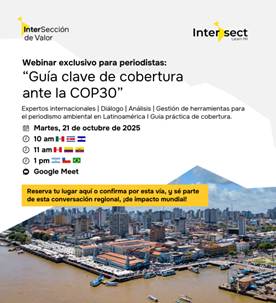 Considerando la relevancia global del evento y el papel estratégico de la región, Latam Intersect, agencia de comunicación integrada con operaciones en Latinoamérica, realizará un espacio llamado “Guía clave de cobertura ante la COP30” que contará con invitados internacionales, cuyo fin será analizar las oportunidades y desafíos actuales del periodismo ambiental o de sostenibilidad y también compartir recomendaciones para el uso de herramientas tecnológicas y protocolos que faciliten y apoyen el cubrimiento periodístico de coyunturas de alto impacto como la COP30.