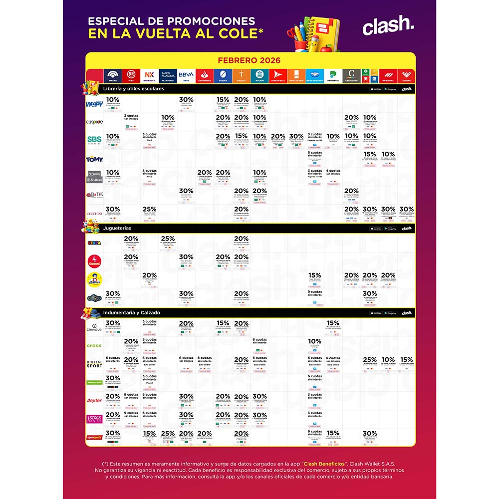 “La Vuelta al Cole 2026 confirma una tendencia que viene creciendo: el consumidor está cada vez más atento a la letra chica. Ya no alcanza con ver un porcentaje grande. Hoy se compara, se calcula y se elige con más información. En este contexto, plataformas como Clash Beneficios permiten ordenar un escenario cada vez más complejo: ver todas las promociones en un solo lugar, comparar bancos y billeteras, y entender cuánto conviene gastar para aprovechar cada beneficio al máximo”, completa Mossuz.
