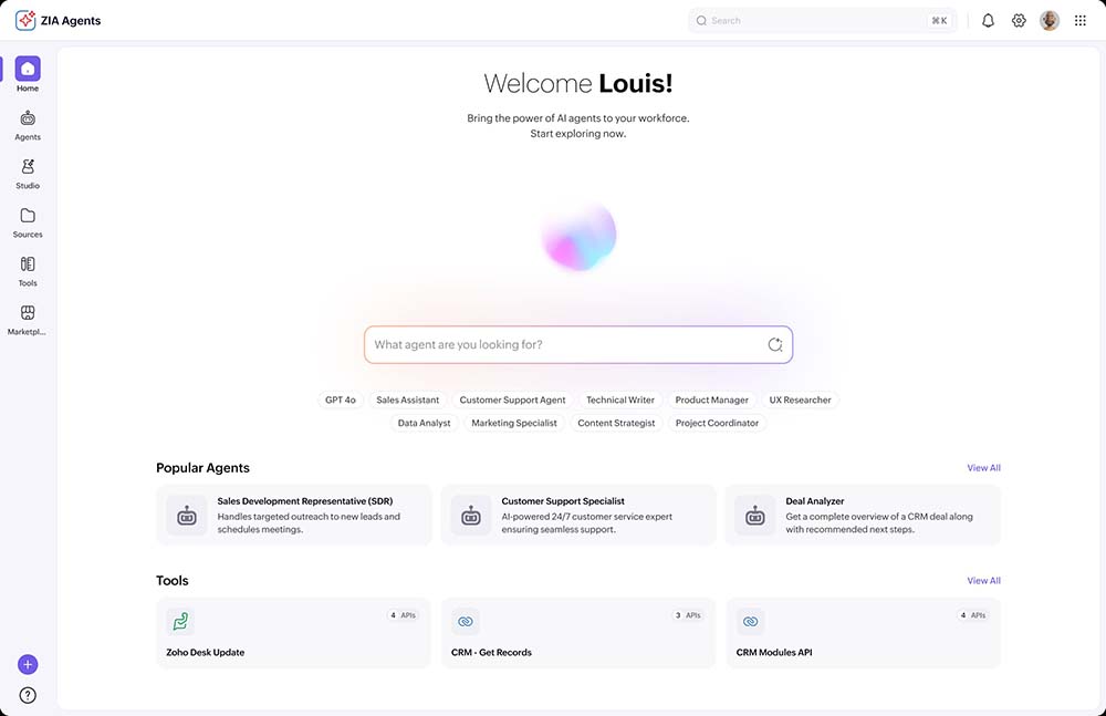 El asistente de IA de Zoho, Zia, ahora tiene un rol destacado en toda la plataforma Zoho One.